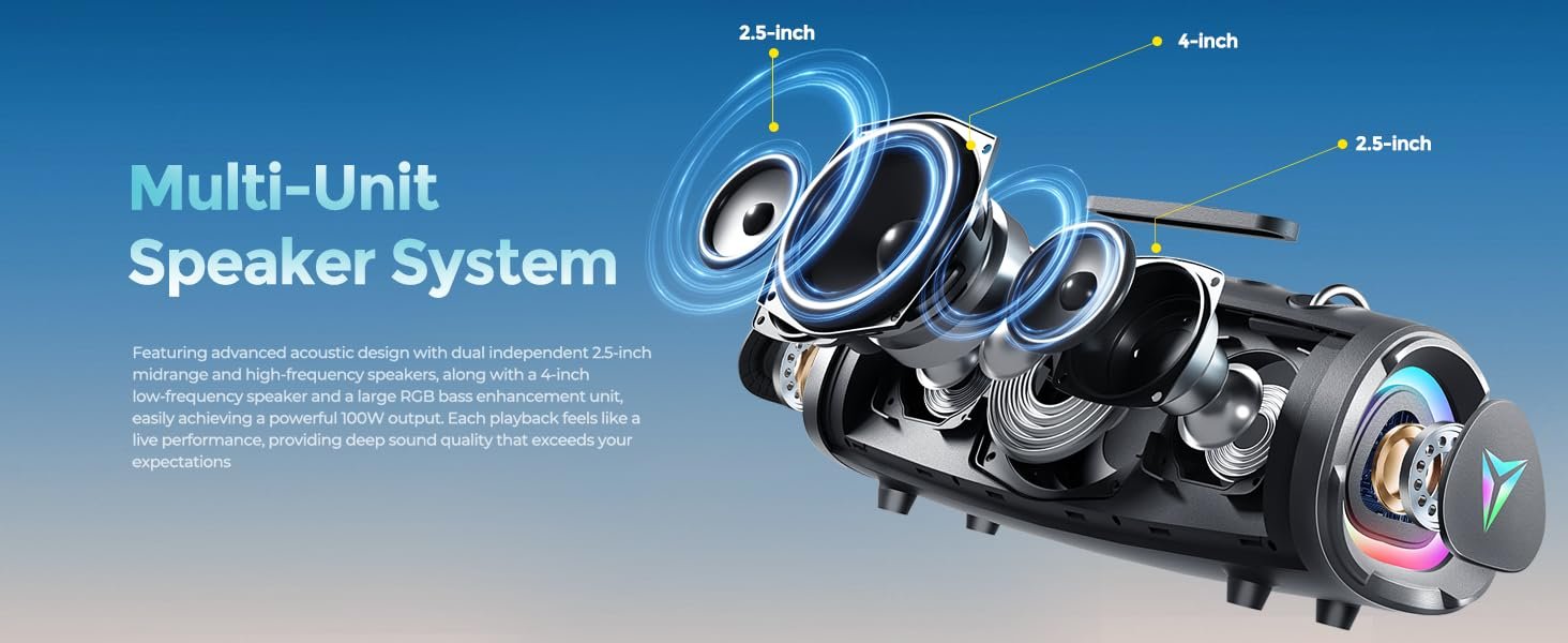 At the heart of the Yeahbox Sonic Boom is its remarkable sound quality, powered by a 120W peak output (100W rated) that delivers crystal-clear audio across a wide frequency range. The speaker features dual 2.5-inch mid-high frequency drivers paired with a robust 4-inch bass driver, creating a balanced stereo soundstage that fills any space with precision. Audiophiles will appreciate the deep, thumping bass that doesn’t overpower the mids and highs, ensuring vocals remain crisp and instruments are distinctly separated. This is achieved through an exclusive acoustic design that incorporates advanced sound chambers and passive radiators, optimizing airflow for richer low-end response without distortion. In reviews, users highlight how the Sonic Boom handles complex tracks effortlessly, from bass-heavy EDM to intricate jazz compositions, making it an ideal entry point for those exploring high-quality audio. One Amazon listing describes it as providing “immersive stereo sound with up to 120W peak power,” emphasizing its ability to produce explosive audio output that belies its compact size. For indoor use, place it in your living room for a home theater-like experience during movie nights, where the deep bass adds depth to soundtracks. Outdoors, it transforms picnics or beach outings into vibrant soundscapes, projecting sound evenly in open areas.
