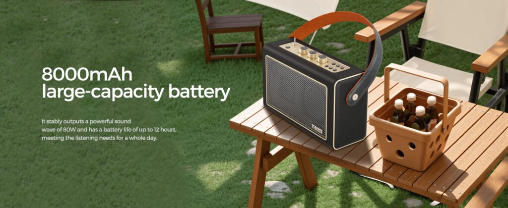 Powering this sophistication is the Starro’s all-day endurance, courtesy of an 8000mAh battery that supports 12 hours of playback at true 80W power. This robust capacity means you can rely on the speaker from morning commutes to evening unwinds, without the constant hunt for outlets. Delivering consistent 80W output, it maintains high volume and quality throughout, whether streaming via Bluetooth or other inputs. Fast charging ensures quick top-ups, making it ready for work, relaxation, or spontaneous adventures. In a market where portability often sacrifices power, the Starro strikes a perfect balance—compact enough for travel yet potent for parties. Similar Yeahbox portable speakers boast impressive battery life, with the Starro’s setup optimized for extended sessions in various scenarios. This reliability allows you to focus on the moment, knowing your music won’t fade prematurely, embodying the quality that’s both audible and dependable.